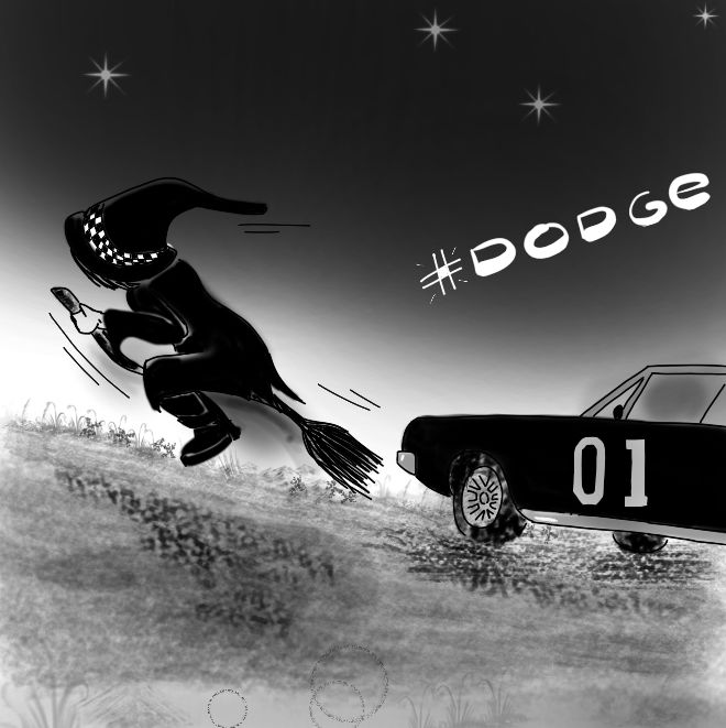 Comme beaucoup de jeunes sorcières, elle a un peu trafiqué la ligne de fuite, pour qu’il gagne en puissance et en capacité d’accélération. Elle aime jouer dans la circulation, se faufiler entre les véhicule, mais évidemment, c’est strictement interdit. En conséquence de quoi, elle ne le fait plus que la nuit, de temps en temps.
